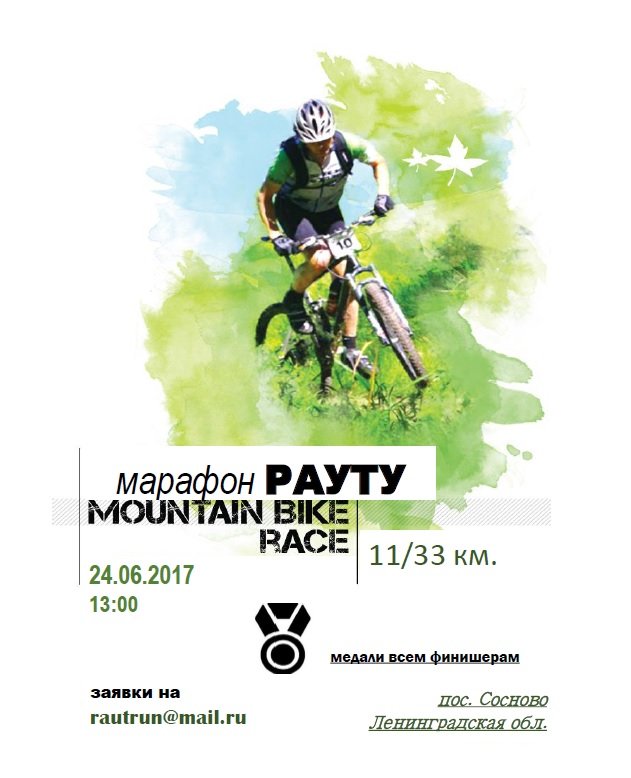 Опубликовано: 5 июня 2017 г. 24 Июня представляем вашему вниманию новый веломарафон Рауту, рядом с поселком Сосново, у озера Уловное. Лес сосновый, дороги песчаные и скоростные: присутствуют интересные сингл -треки на маршруте. Каждому памятная медаль на финише. официальная группа в ВК https://vk.com/croscountry 0 Поделиться сообщением Link to post Поделиться на других сайтах