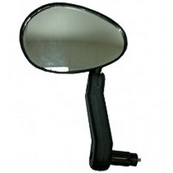 Зеркало имеет чуть сферическую поверхность для увеличения радиуса обзора. Специальное крепление позволяет устанавливать зеркало в торец руля внутренним диаметром 15-22мм, благодаря чему достигается максимальная обзорность. Очень похоже на CatEye BM-500G, только зеркало больше размером и имеет вынос кронштейна наружу, соответственно, обзор намного лучше.