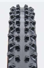 Мотокроссовый рисунок протектора, с широко расставленными высокими коническими шипами из мягкого, эластичного компаунда, причем при солидных габаритах, шина скорее высокая, чем широкая.