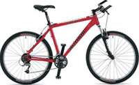 [Минусы]: 1. По центру обеих покрышек идет линия жестких бугорков. При езде не по гуане они не нужны, а вот на асфальте вел сильно дрожит. 2. Он красный :) В принципе не имею ничего против этого цвета, однако вылядит вызывающе. И в лесу под елкой оставлять страшновато - видно больно хорошо. 3. Вилка, конечно, оставляет желать и желать...
